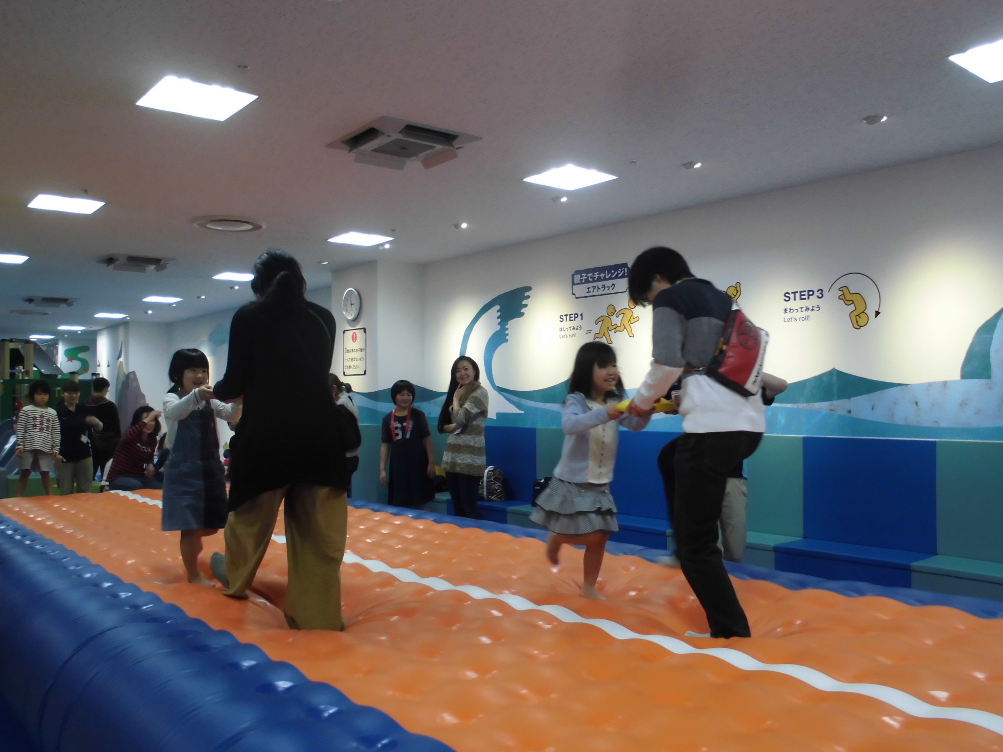 ボールを落とさないように慎重に、親子で力をあわせて頑張りました。