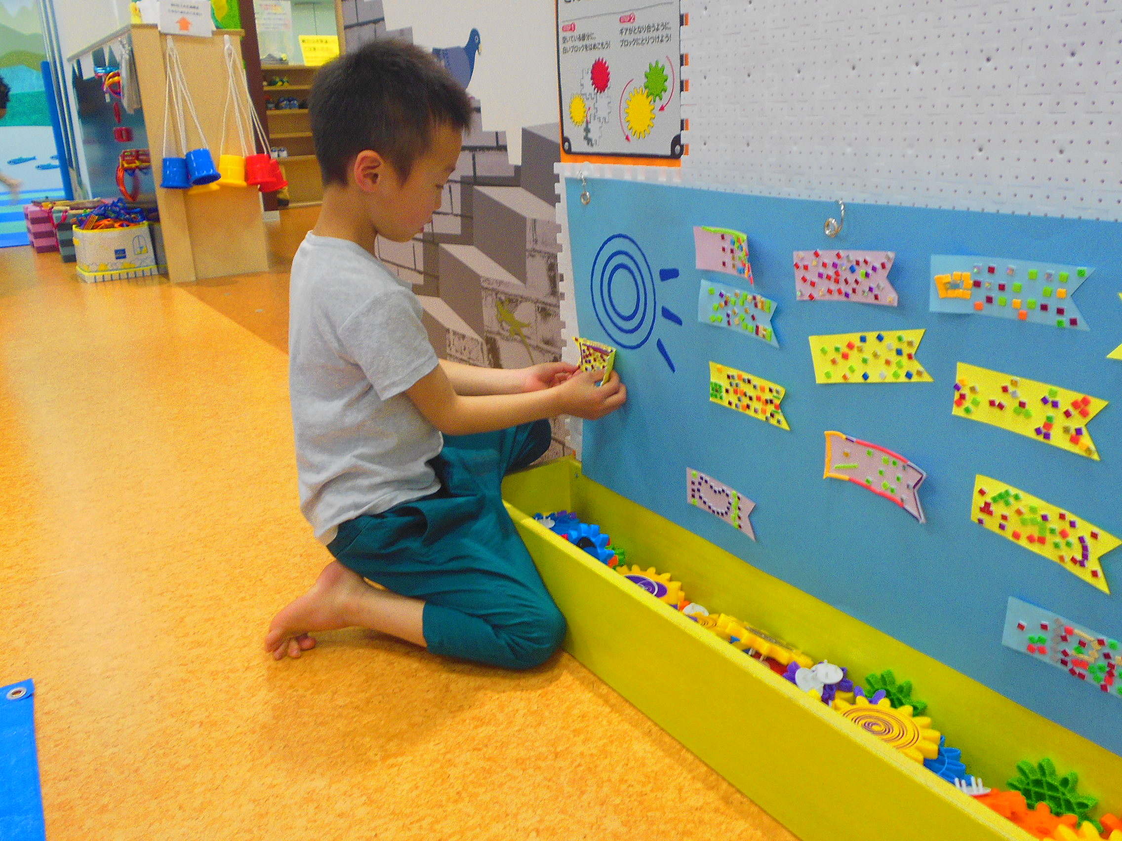 まずは4月29日(金)。 スティッキーモザイクというシールを貼ってこいに模様を描きます!