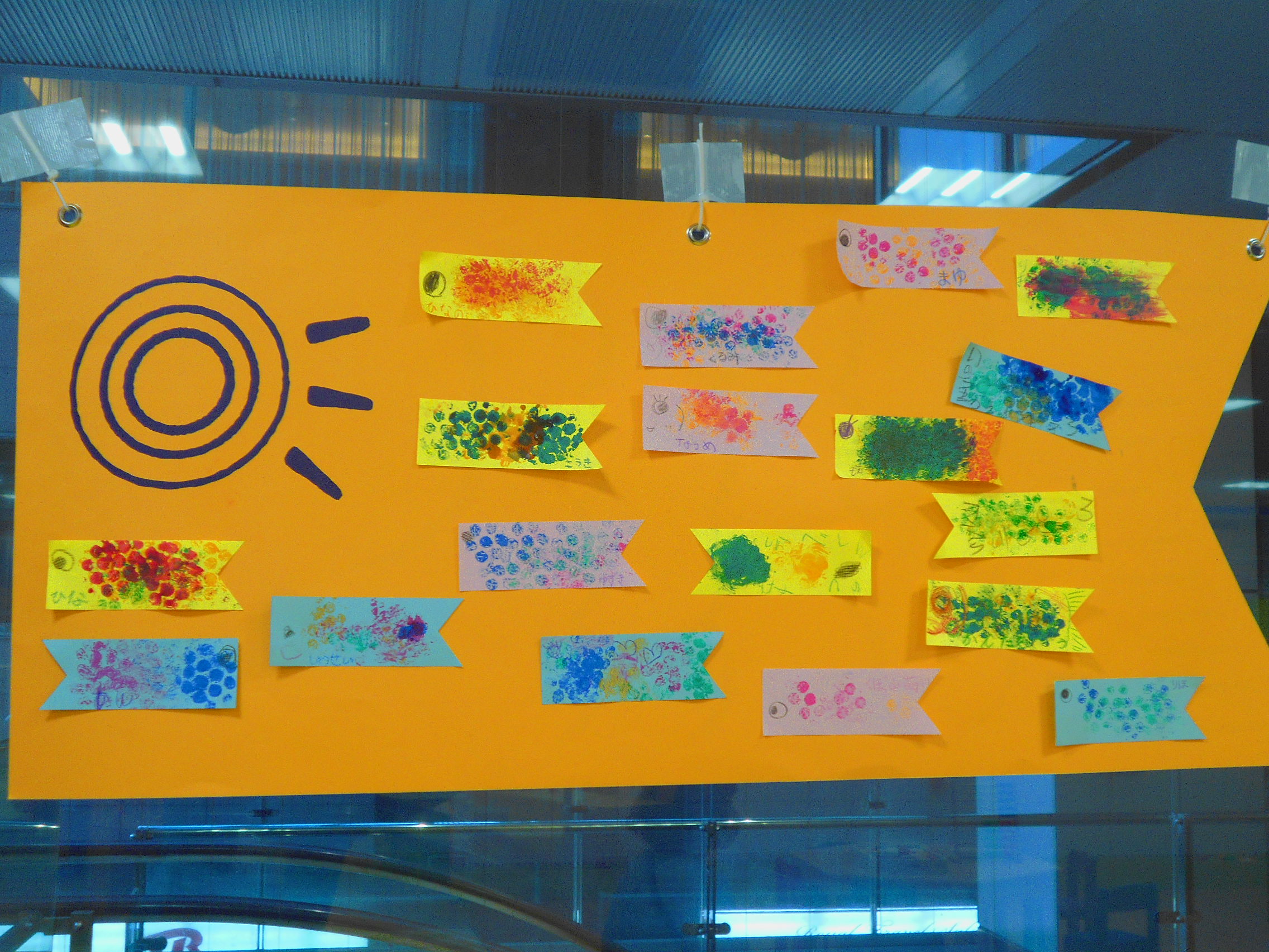 出来上がった大きなこいのぼりはキドキド内に飾っています!