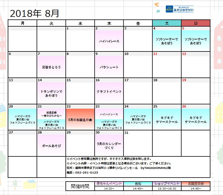 ボーネルンドあそびのせかいタカシマヤキッズパティオ博多リバレインモール店のお知らせ一覧
