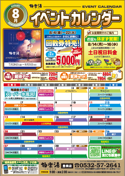 2月イベントカレンダーの発表♪今月の極楽湯豊橋店は周年祭!! おかげさまで13周年を迎えることができました! ガラガラ抽選会や様々な割引で大盛り上2019年02月05日 11時45分