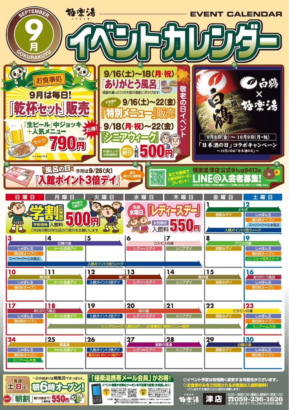 極楽湯 津店のお知らせ