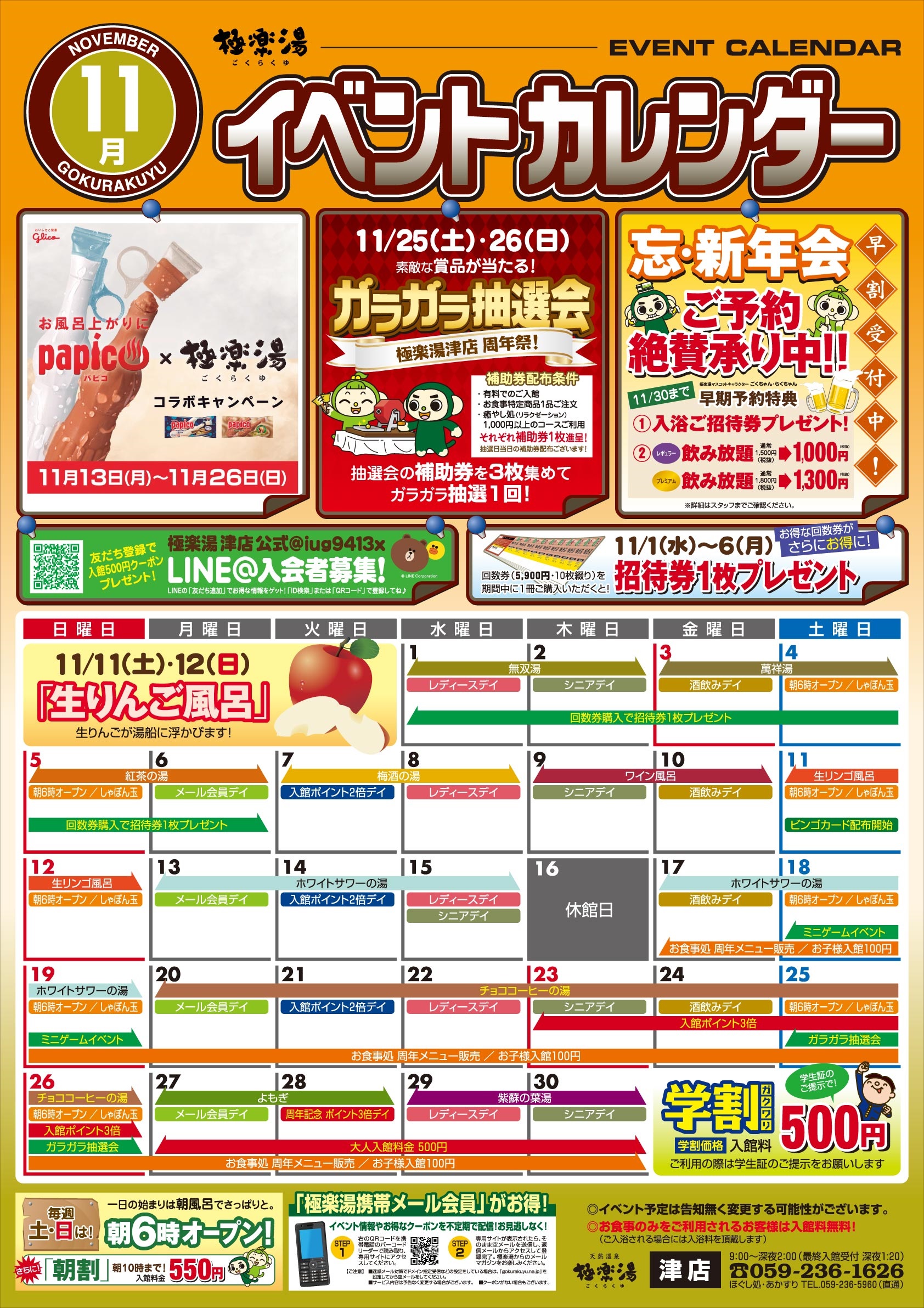 極楽湯 津店のお知らせ