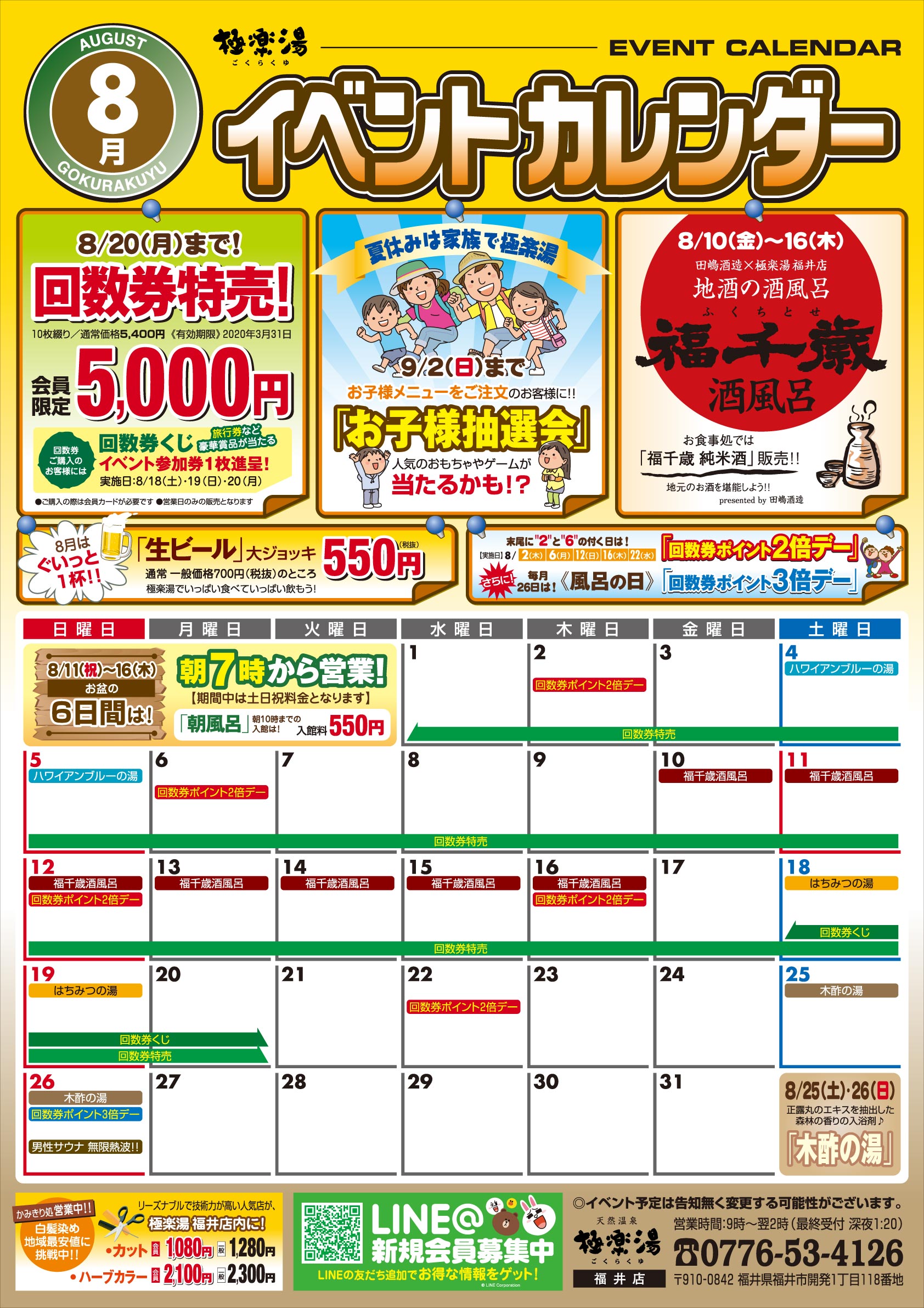 1月イベントカレンダーのお知らせ★明けましておめでとうございます!2019年も極楽湯福井店はたくさんのイベントをご用意いたします♪三が日は新年の祝2019年01月04日 17時56分
