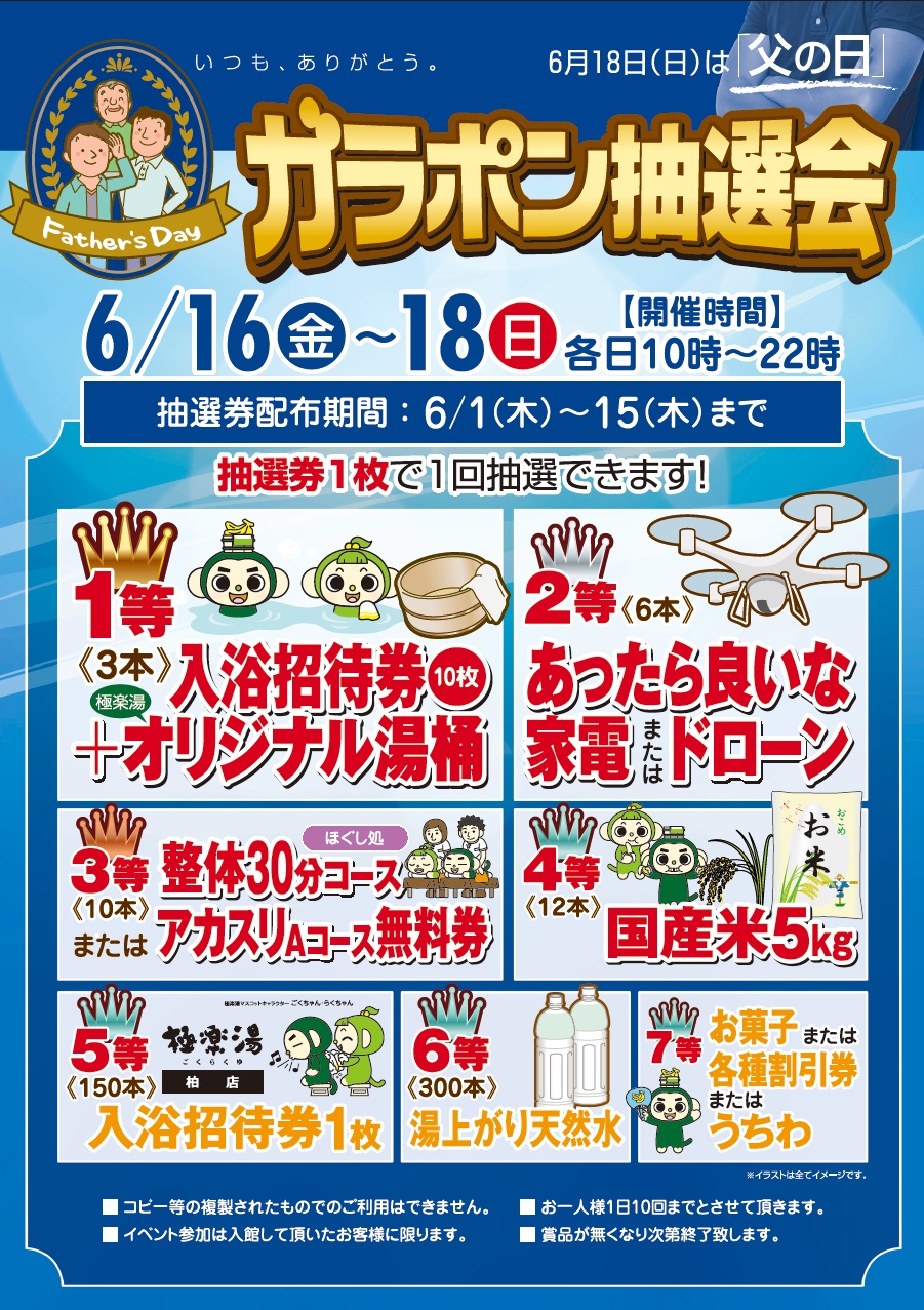 2月イベントカレンダーの発表♪今月の極楽湯柏店の周年祭イベントを開催! おかげさまで16周年を迎えることができました! 様々な割引や柄ポン抽選会な2019年02月05日 11時24分