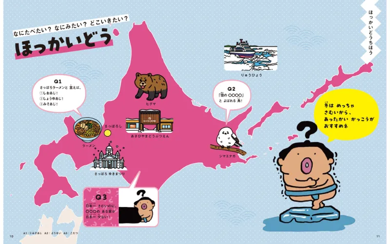 日本の魅力を子どもたちに届け、知的好奇心と質問力を育む「クエスちょんまげPJ(プロジェクト)」から生まれた絵本。日本の文化や地域の特色や多様性をクイズにし、その魅力を「なんで?」という問いから掘り起こします。
