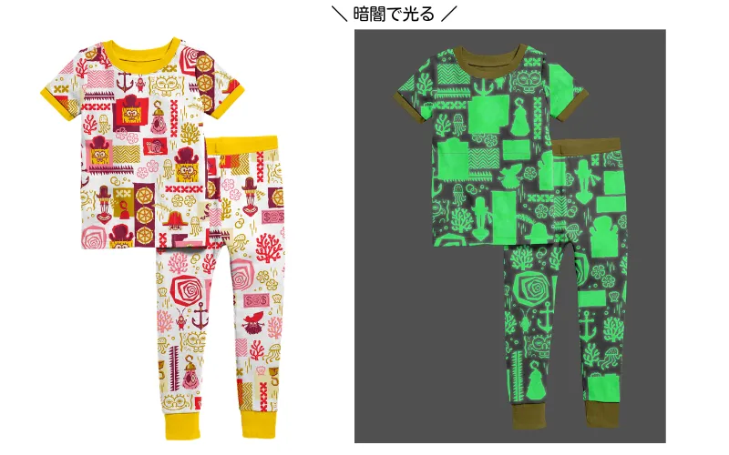 一緒に夢の世界へ♪スポンジ・ボブの暗闇で光るパジャマペアセット(120&150サイズ)